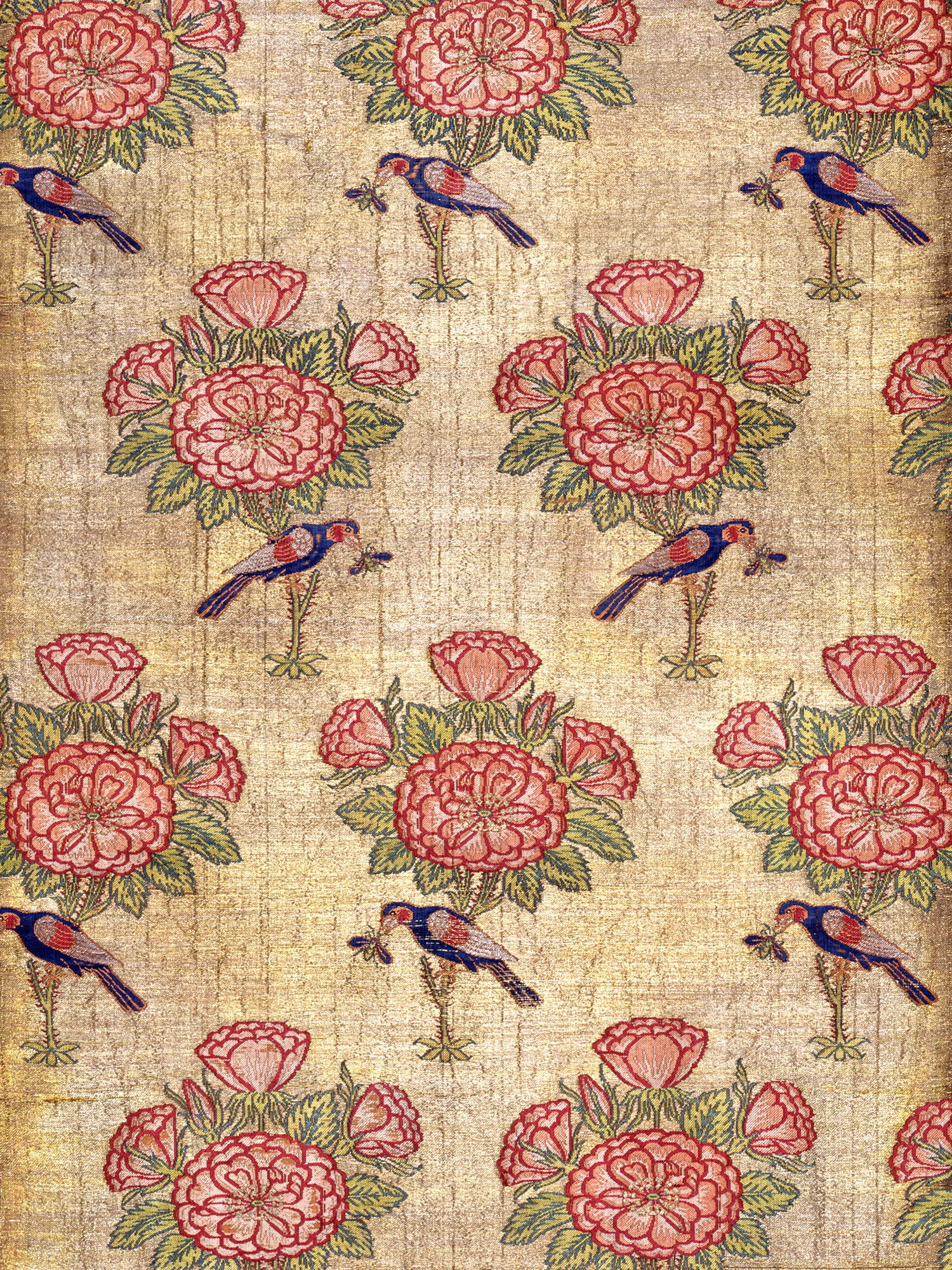 This fine weaving with a ground completely covered in gold threads was probably made in Persia during the period of Safavid rule (1501–1722). The naturalistic rendering of the rose and bird already points to the influence of European botanical illustrations on Persian art, which began towards the end of this era. Luxury textiles from Asia were much coveted collectibles in Europe from the early 17th century onwards. | Persia, late 17th century, silk, metal threads, h. 72 cm, inv. no. 5411