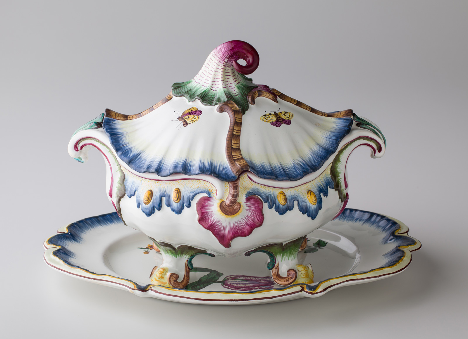 Strasbourg Faience In 1990 Margaret Abegg acquired a large group of eighteenth-century Strasbourg faience from a collector's legacy. The items include tableware decorated with flowers and chinoiseries and three-dimensional show-pieces. Fig.: Terrine with platter, Strasbourg, Hannong Manufactory, 1745–1754, inv. no. 3.233.90 a, b
